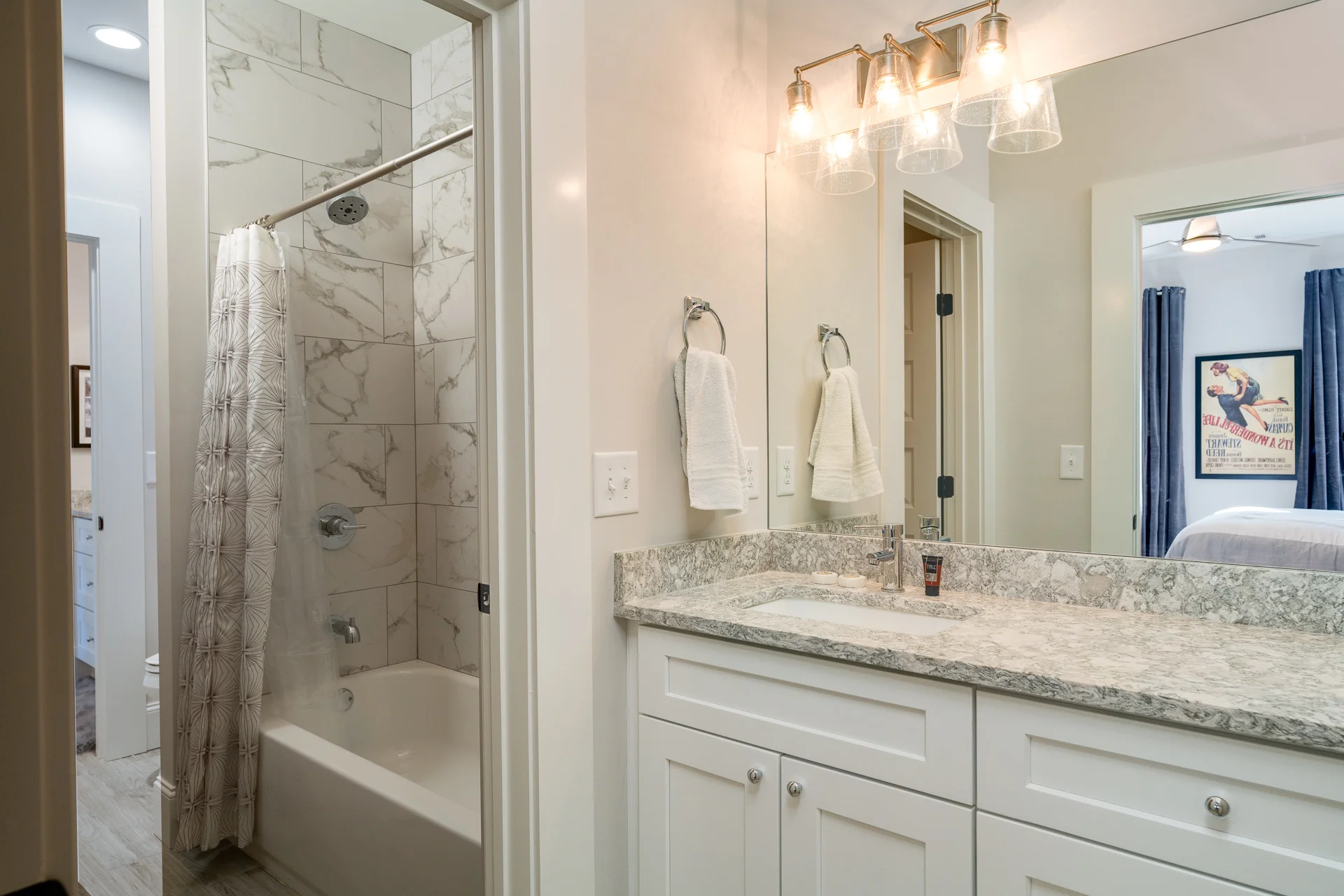 Intown living at its finest! Maximizing space and incorporating fine details in the craftsmanship of this modern midtown bungalow were high points for us. The master bedroom is a favorite of ours. The tray ceiling, recessed lighting, and warm stylish paneled gray accent wall make for a very relaxing space.